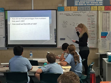 In another lesson, the smartboard was used to help the students explore the concept of percentages at their own pace. The problem was projected on the board for all to see, and I then worked through it with them using the ‘I do, we do, you do’ model. The ease of simply flipping forward to the next slide for a fresh problem makes it easy to keep pace with the students working.